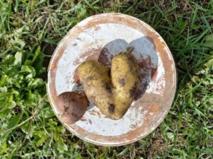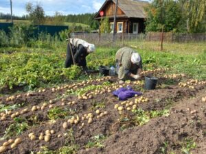 Чем богаче урожай, тем больше рук требуется для его уборки. Проживающим на подворье монахине Акилине и насельнице Наталье без помощников никак не обойтись. А на таких работах, как копка картофеля, особенно. Слава Богу, в этом году такие помощники нашлись. И уже 7 сентября богатый урожай картофеля из Полыгарца заложен в погреба.
