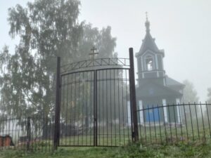 Зеленый деревянный храм, окружённый ветвистыми деревьями, стоит на самом въезде. Перед ним – просторная поляна, с которой начинается сельская улица. И первым на этой улице стоит двухэтажный, дореволюционной постройки дом. С просторной оградой и большим огородом. Здесь и располагается монастырское подворье.